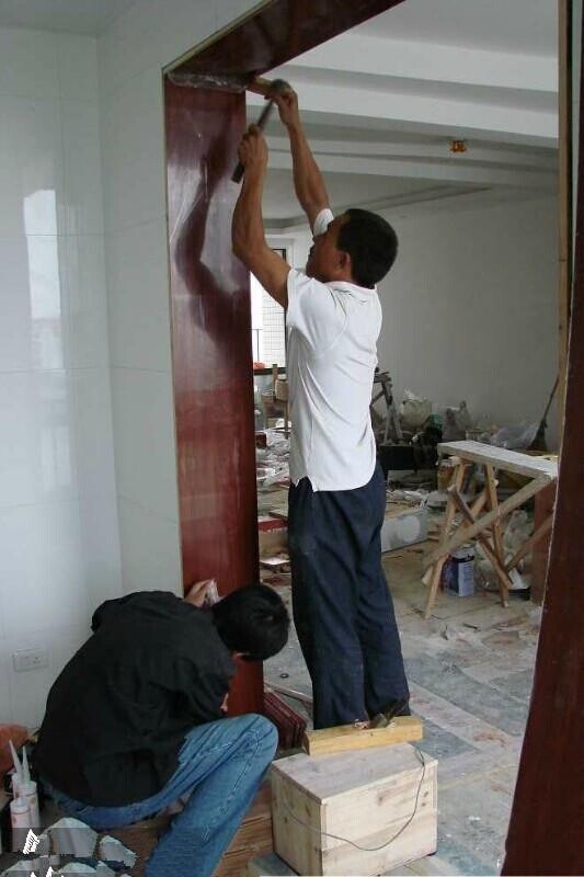 1、過門石、大理石窗臺的安裝。過門石的安裝可以和鋪地磚一起完成,也可以在鋪地磚之后,大理石窗臺的安裝一般在窗套做好之后,安裝大理石的工人會準(zhǔn)備玻璃膠,順手就把大理石和窗套用玻璃膠封住了。